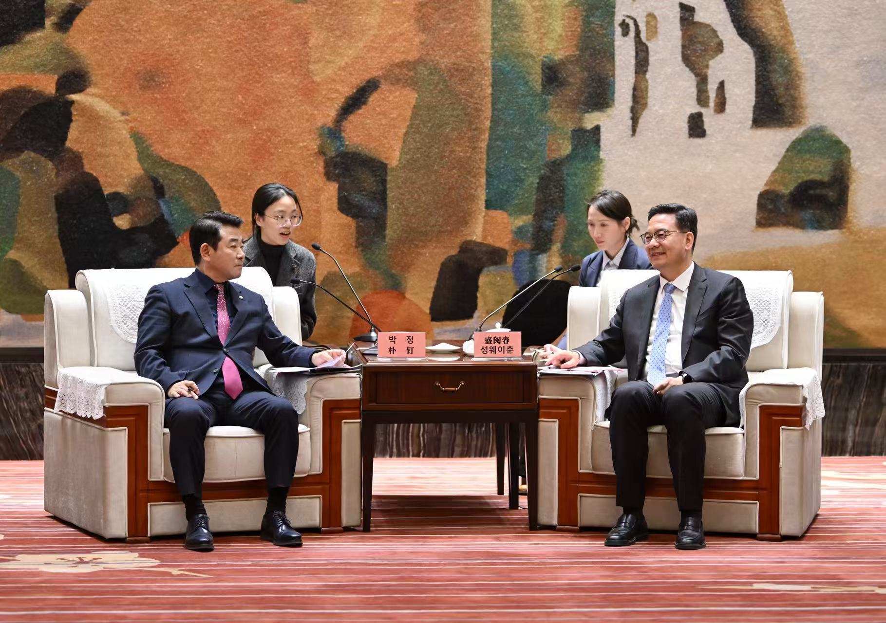 11月25日,省委常委、市委书记盛阅春会见韩国国会韩中议员联盟代表团一行。