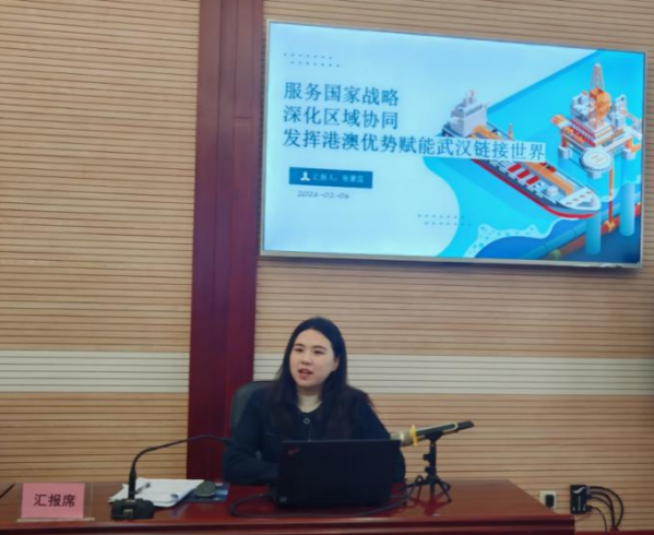港澳处张蒙蕊同志以《服务国家战略 深化区域协同 发挥港澳优势赋能武汉链接世界》为主题,围绕国家港澳工作大局与“十五五”规划战略部署,重点分析了新时代地方港澳工作的新要求与新使命,综合梳理了当前武汉市与港澳地区合作的基础、成效与面临的挑战,并结合工作实际,提出了立足武汉、辐射中部、借力港澳、面向国际的下一步工作思路与措施。