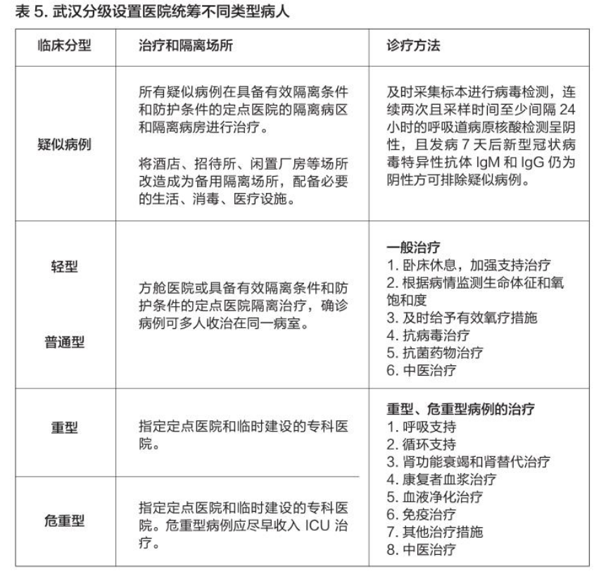 ——确诊患者分级早收治。对于确诊的患者、重症患者送定点医院入院治疗,轻症患者无法全部进入定点医院治疗的,安排到指定区域(包括“方舱医院”)进行隔离治疗。