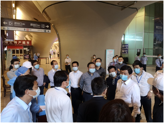 5月1日上午,段晓明主任、李军副主任陪同市疫情防控指挥部外事组组长、市纪委张曙书记到武汉火车站调研指导境外返(来)汉人员疫情防控工作。