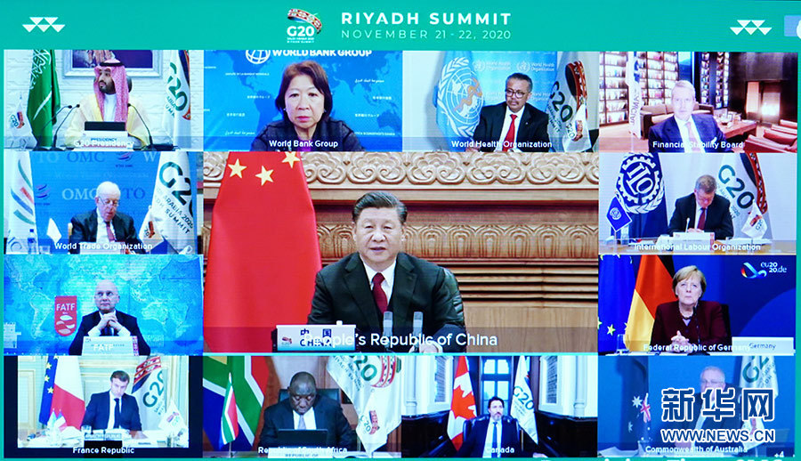 11月22日晚,国家主席习近平在北京以视频方式出席二十国集团领导人第十五次峰会第二阶段会议,重点阐述关于可持续发展问题的看法。 新华社记者 饶爱民 摄